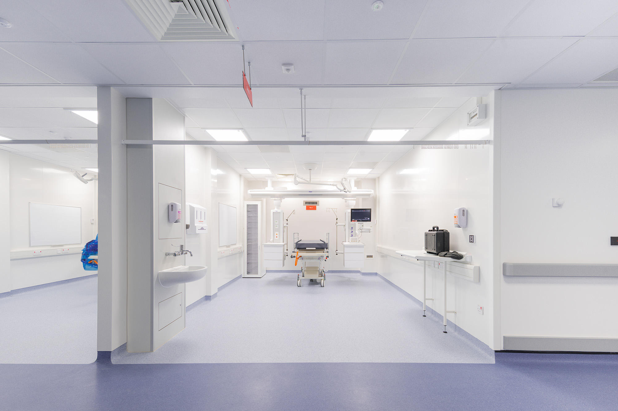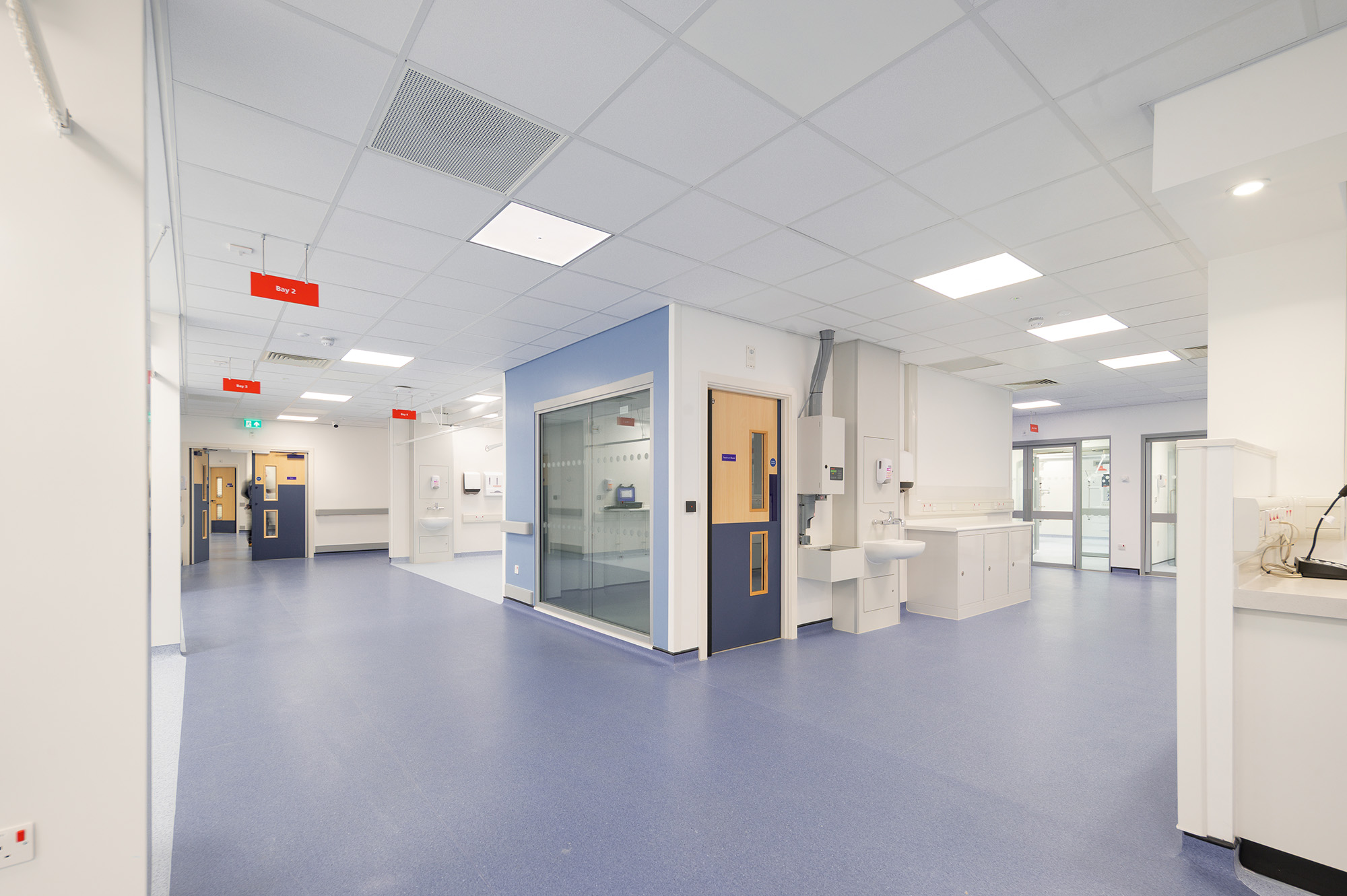 To maintain continuity of emergency services, Speller Metcalfe initially completed enabling works, refurbishing existing internal areas to create temporary resus, entrance and assessment spaces. The main works then transformed the department to include dedicated paediatric resuscitation areas, new isolation rooms to support infection control, an improved bereavement suite, and the introduction of modern digital technology and equipment to support contemporary healthcare delivery.