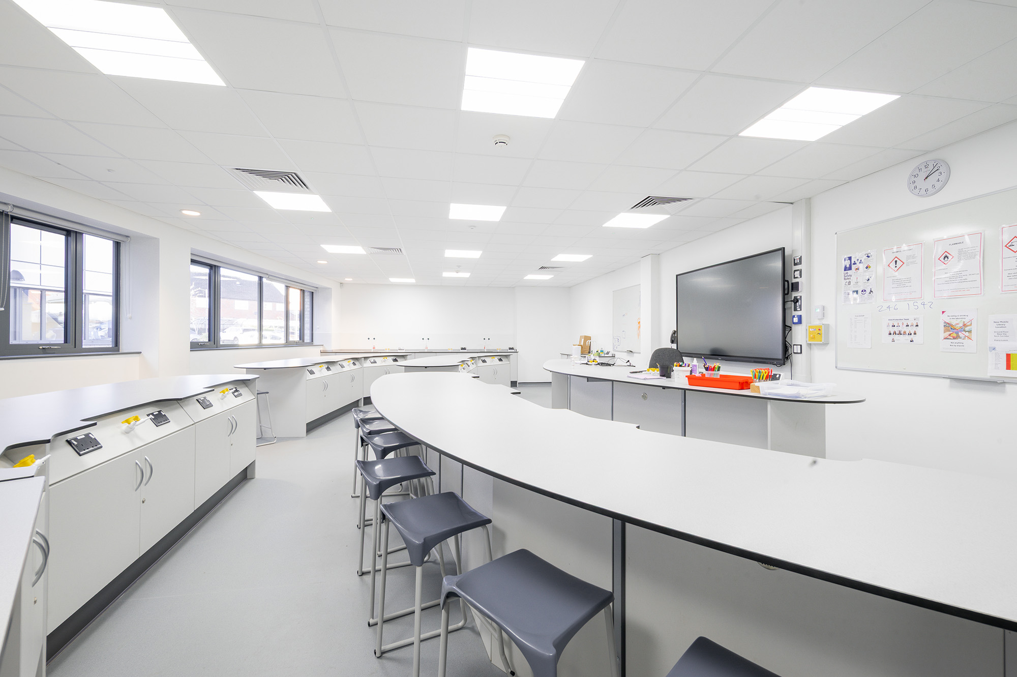 The redevelopment has delivered a series of three, 3-storey wings and a 2-storey wing adjoined to the main buildings, which now house state-of-the-art science laboratories, a purpose-built dance and drama studio with retractable seating, music rooms and enhanced facilities to support students with additional needs.