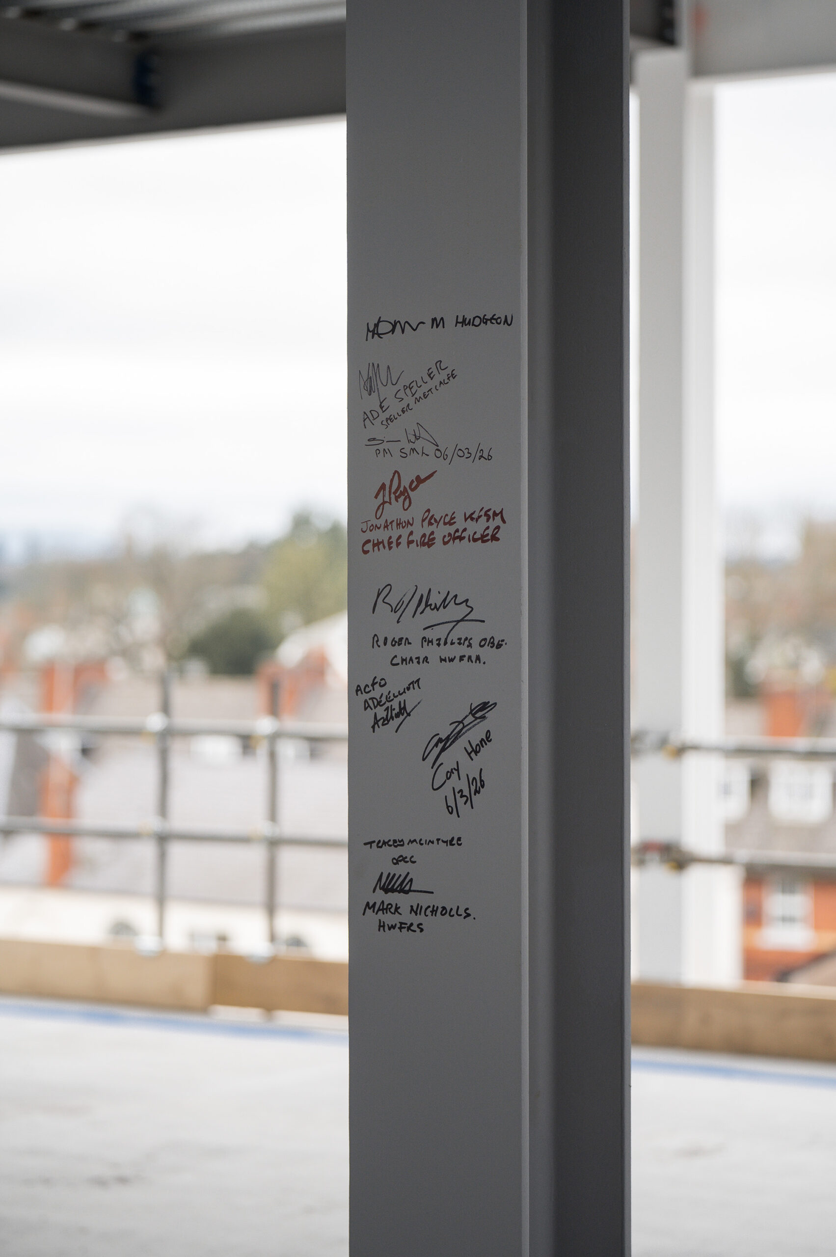 This progress was marked with a steel-signing ceremony attended by representatives from Hereford & Worcester Fire and Rescue Service (HWFRS), the OPCC Estates project team, the Fire Authority and main contractors Speller Metcalfe.